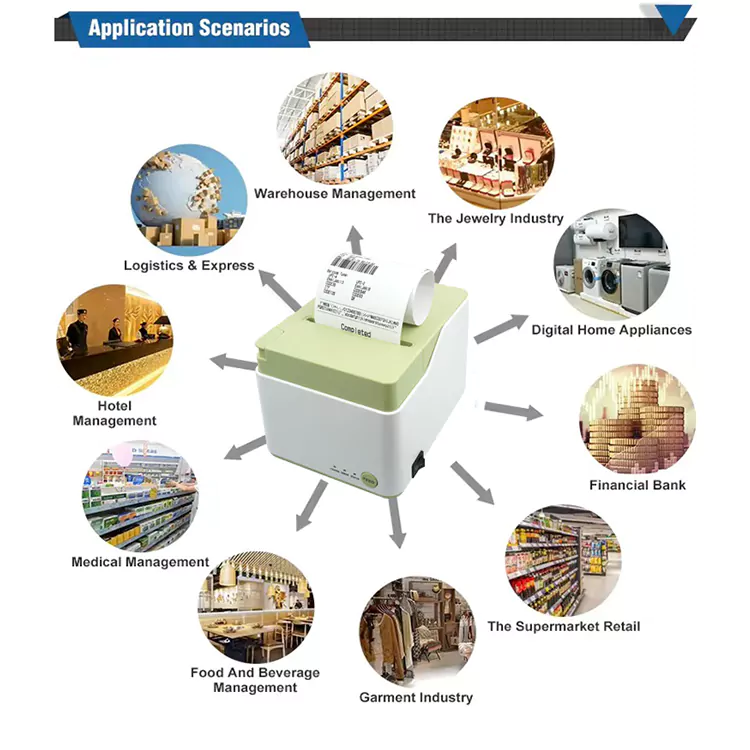 Is é a luas priontála 250 mm/s, agus leithead priontála éifeachtach 72 mm nó 64 mm. Tacaíonn sé le barrachóid iolracha, lena n-áirítear UPC-A, EAN-13, CODE39, agus CODE128, rud a fhágann go bhfuil sé oiriúnach do thionscail éagsúla cosúil le lónadóireacht, siopaí ilranna, agus ollmhargaí.