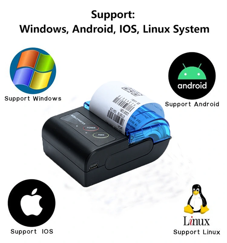 Tá an printéir admhála teirmeach soghluaiste 58mm comhoiriúnach le córais oibriúcháin éagsúla, lena n-áirítear iOS, Android agus Windows, rud a fhágann gur rogha ilúsáideach é d'aon úsáideoir. Tacaíonn sé le muirearú tapa USB, atá feistithe le ceallraí in-athluchtaithe marthanacha, agus tá ceann priontála teirmeach den scoth ann, a chinntíonn go bhfuil ábhar priontála soiléir agus tapa.Tá muid ag monaróir printéir admhála bluetooth le 10 mbliana de thaithí.