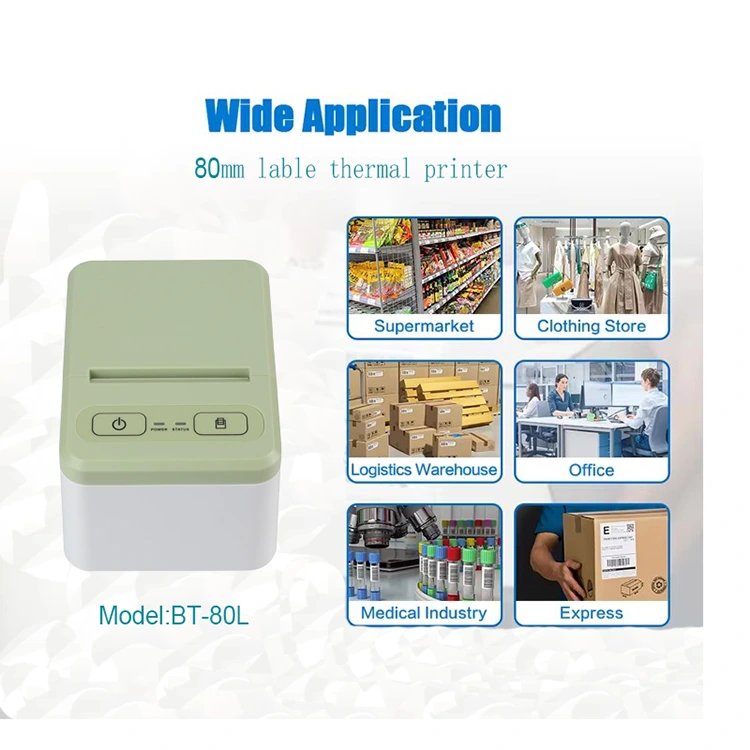 Is é coincheap dearaidh ár printéir lipéad teirmeach dath a chur ar chumas custaiméirí é a úsáid i gcórais stórais mhonarcha, siopaí miondíola beaga a bhfuil gá le lipéid bheaga a phriontáil, chun lipéid bheaga, barrachóid, marcanna loingseoireachta, greamáin, srl a phriontáil Is féidir leis an tsamhail 80L tacú le priontáil i leithead idir 20 agus 80mm, rud a fhágann go bhfuil sé oiriúnach do chustaiméirí éagsúla le riachtanais éagsúla. Tá sé deartha le bheith dlúth i méid, rud a fhágann go bhfuil sé áisiúil é a iompar agus a chur.